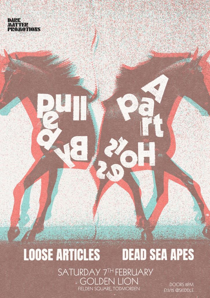 https://www.skiddle.com/e/41495070: Pulled Apart By Horses + Loose Articles + Dead Sea Apes Saturday 7 February 8pm